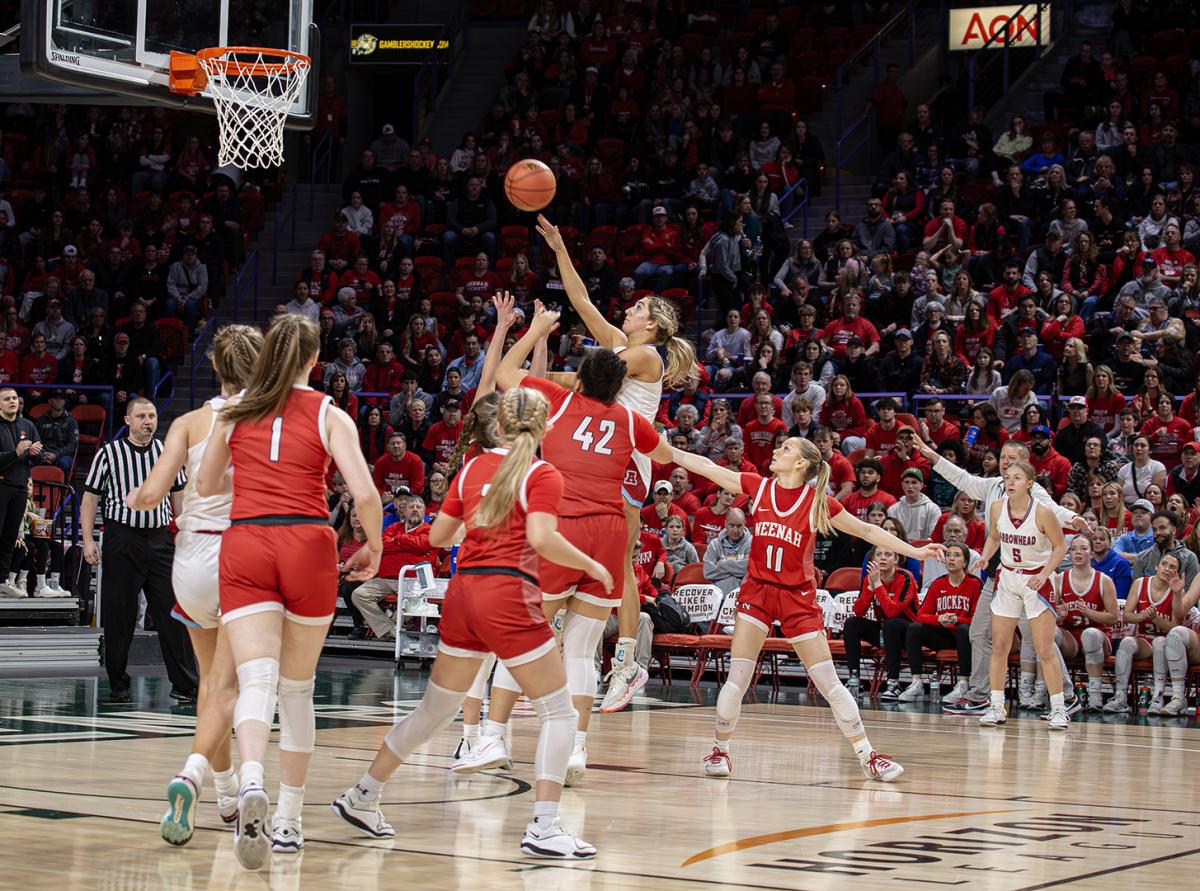 Perfect moment; very sharp; the colorful crowd is not distracting; well done
