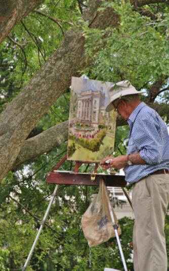 Interesting story; may not be vertical; very tight on the right; could crop from the top; might be nice to see what he's painting