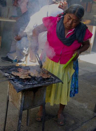 Good color; nice to see the subject in her element; interesting contrast between the modern world cell phone and the third world activity