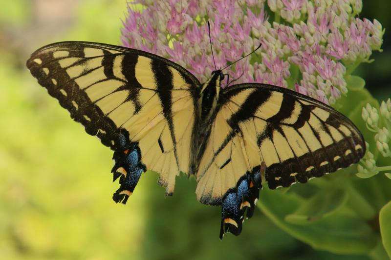 Great sharpness; blue color is beautiful; good composition; subject quite tattered; brightness on left competes with butterfly
