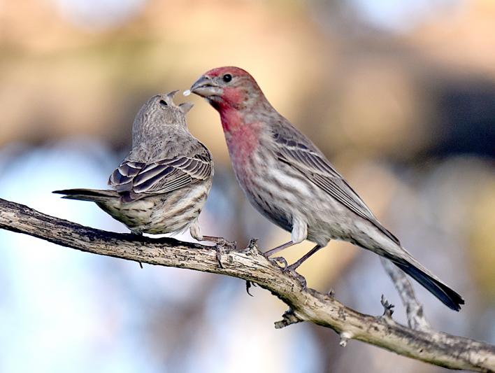 Great catch--a perfect moment; angled branch is very nice; blurred background allows birds to stand out