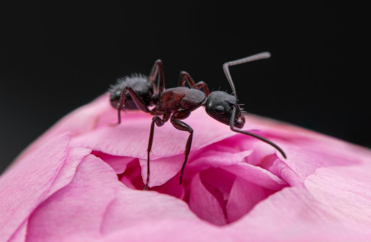 Good subject and composition; nice contrast; ant seems to pick up color from the flower in its mid-section; good impact; face is sharp; the flower is bright; suggest a little more depth of field